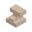 Holzmodell aus hochwertigem Hartholz. Quader mit einer Stufe, Nur und einer Abschrägung zum abzeichen. Grundmaße: 50 x 80 x 30 mm